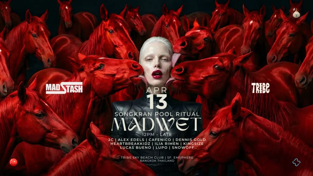 to the afterparty at Greenroom by the pool, where it gets deeper, darker, and unapologetically underground. Songkran is not just a festival — it’s Thailand’s most electric moment, where locals and travelers collide in pure freedom, and MADWET is where it happens.